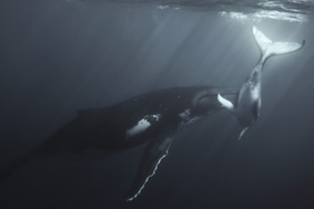 Liam Lynch An intrepid sleuth, Lynch endures whatever extremes he must in order to capture the story he is bound to tell us in his photographs.Making his expedition to Tonga in September 2010, Lynch spent 14 days communing with his subject in the deep, deep blue. Suspended underwater, his chest thrumming with the reverberation of whalesong, Lynch takes us all with him to the home of the giant. 'Breath' brings us a rare experience to be up close and personally immersed in the colour and scale of the Southern Humpback whale. We are right there - tiny, awestruck, curious. The reverence inherent in his images speaks of what we stand to lose from nature's great family and gives us a rare glimpse at the resounding beauty of these animals. Each image also gives us a glimpse of Lynch's passion. At the heart of his art Lynch holds a profound awareness of what it is he shows us: the precarious nature of these enormous lives, lived in shrinking seas. This exhibition is displayed at large scale to celebrate the gargantuan beauty of the subject. The works - like the whales - are both powerful and serene; mighty and gentle; massive and passive. |
