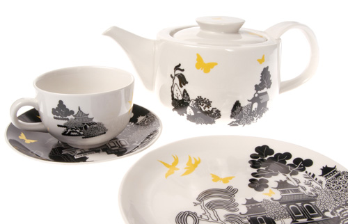ITS ALL HERE IN BLACK AND WHITE - this time in a modern take on Willow Pattern plates - modernised and simplified. tea plates, Cakestands, all here - Pop in for tea. ![]()
