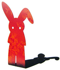 AND BACK HOME THEY'RE BREEDING LIKE RABBITS Melbourne metalartist Peter Mclisky is a local boy making smiles for anyone whose spirits need a lift. These cheeky bunnies are forever joined to their own shadow. Use them as bookends, sculpture, jewellery stands, they wont mind. Various sizes from shelf to gigantic. Various colours from brilliant to basic black. Hop in and see them today.