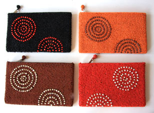 DOT GAIN Colours of the outback, delicate beaded purses. Be quick.