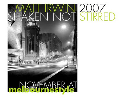 BE THE FIRST TO SEE HOW MELBOURNE WILL LOOK IN 2007. MATT IRWIN's iconic 2007 calendar 'shaken not stirred' was launched at melbournestyle on November 15, and an exhibition of these photographs on canvas is currently on display in store..