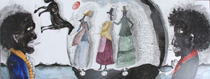 Bern re-imagines the past through her unique narrative portraits of the people that configure our history. Scanning Australia's past, she moves in and out of the epic and the personal space. She collects those identities that pique her curiosity, dissecting their stories and cataloguing the imagery and the meaning of their contribution, and adding notes and anecdotes in her trademark script. Her whimsical style delivers a unique personal take on our history, ranging in tone from tender to cheeky to tragic.