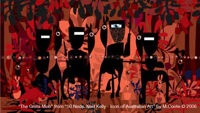 Awesome Foursome 1mx1mSOLD | Ned Quixote 1mx1m | Ambush at Stringybark Creek 1mx2m SOLD |