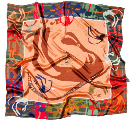 | tartan roos tan Signature kangaroo motif playfully juxtaposed with a tartan pattern, in exploration of contrast and traditional motifs. Glorious rich tones and whimsy. 100% SILK 97x97cm Buy Now |