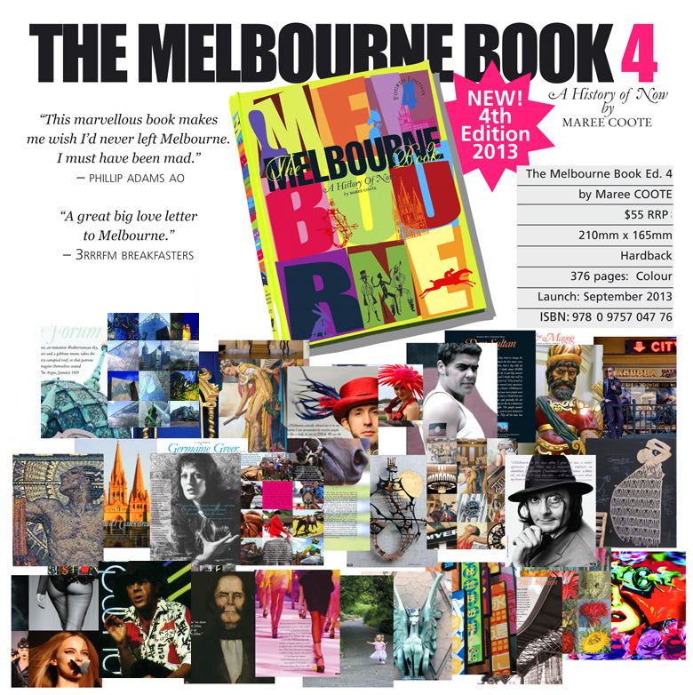 | REVIEW: "More in depth than a travel book and more fun than a history book. The Melbourne Book: A History of Now peels back the glossy tourist brochure facade of many such publications to uncover a city of substance. Artist, designer and author Maree Coote has taken the minutiae of the world's most liveable city, such as its weather and its invention of Vegemite, and turned them into a unique story of Melbourne and its people. Comprising a collection of interviews and more than 700 colour photogaphs, The Melbourne Book is perfect for not only fans of the city but also fans of Australian history and culture." - Heather Zubeck, 'Under Review', BOOKS, The West Australian |