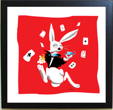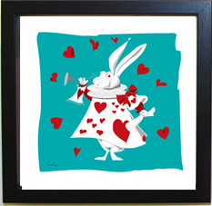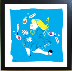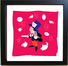 ALICE IN WONDERLAND prints on Hahnemule ragpaper by Maree Coote. Framed in black timber box frame 23x23cm